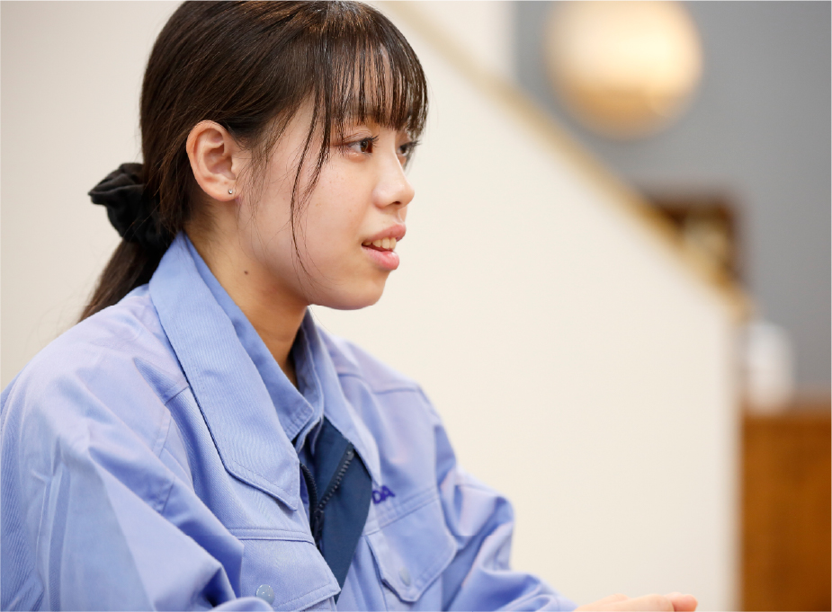 - 工業高校出身だった兄の影響で、自身も「高校のうちから専門的な勉強をしたい」と感じていた。また、小さな頃から絵を描いたり、美術館に行ったりすることが好きだったことに加え、関節リウマチを患っている祖母への想いもあり、「人に優しい建築を学びたい」と考え建築デザイン科を専攻。在学中は数えきれないほど多くの図面を描いたという。