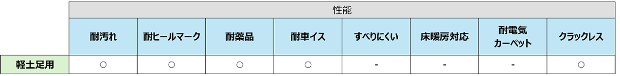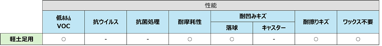 | 表面仕上げ | 軽土足用塗装 耐傷性、耐汚染 |