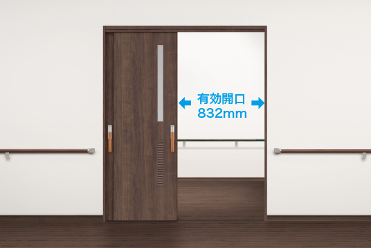 ●有効開口寸法832mmを確保。車イスもラクラク通れます。