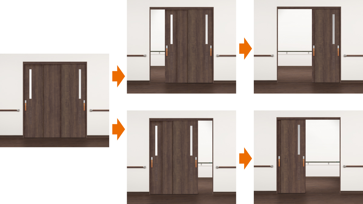 ●扉が連動(シンクロ)しながら左右どちらからでも開閉できます。